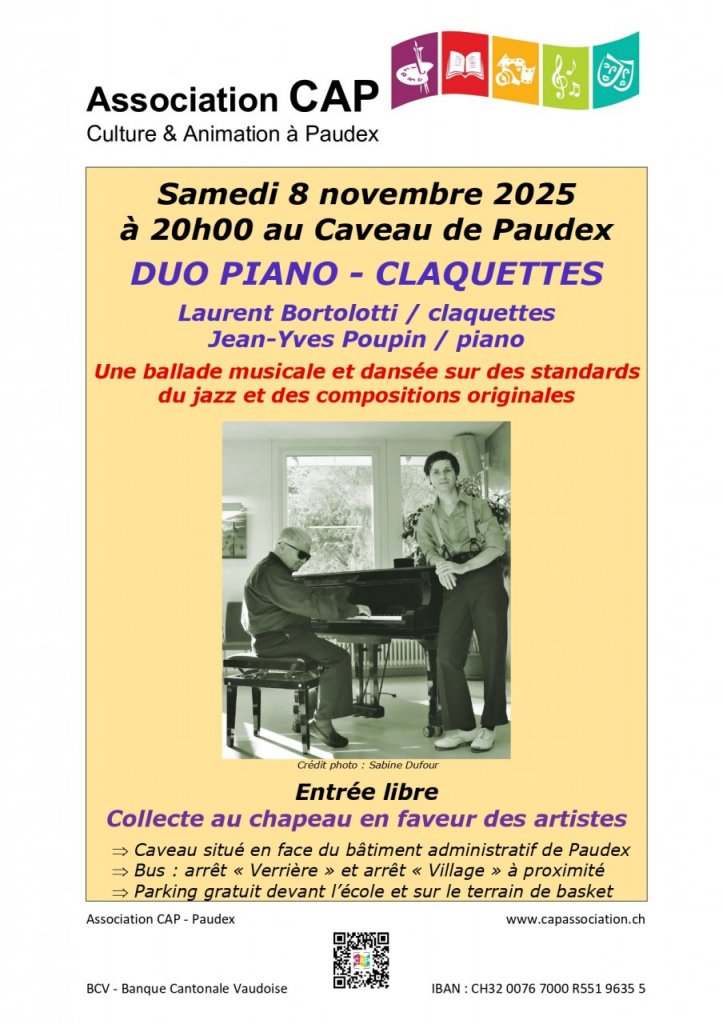 l’Association CAP - culture et animation à Paudex - organise des événements en lien avec la culture, notamment des concerts au caveau de Paudex.